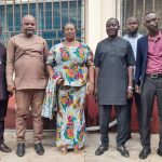 `The Biakoye District Chief Executive Hon. Millicent Kabuki Carboo on Thursday, 6th July, 2023 during a short ceremony handed over 100 dual desks to the District Director of Education for distribution to schools that are dying in need of furniture at Worawora. The Hon. DCE charged the Education Director to take good care of the desks.